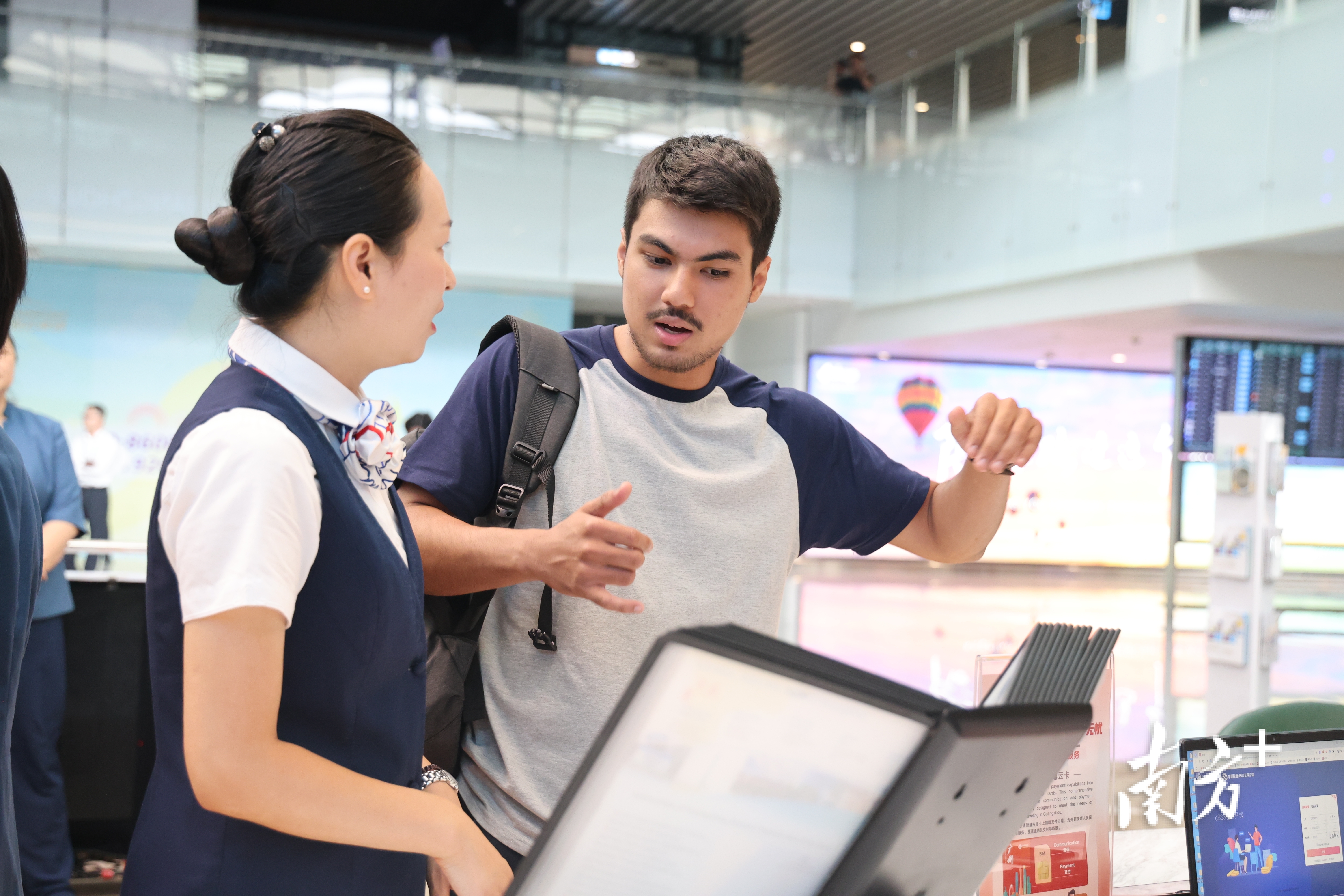 如支付做事方面,做事中心除了引入ATM机方便取现,责任主说念主员会主动扩充外籍来宾使用国内移动支付器具;通讯做事区域则能匡助外籍来宾快速办理腹地电话卡及汇注套餐,确保信息流畅,做事中心还集中通讯公司、银行共同研发“颖悟生计卡(粤云卡)”,罢了一卡同期得志通讯、支付等多重需求;交通方面涵盖机场大巴、地铁、出租车等出行方式的扣问做事,还提供个性化租车做事及羊城通城市旅游卡、湾区pass卡等交通卡的销售做事;文旅板块则全心准备了广州及临近地区的旅游资讯、出行攻略,并有专科的文旅管家为外籍来宾提供度假、文创、旅游、东说念主文、生计于一体的定制化旅游有筹办,以及机场中枢旅社群的预订做事;会展方面则依托会展管家,为插足种种展会的来宾提供如“广交会”等展会推选、参展有筹办定制等专属做事,全面保险商务游客来粤洽谈与交流。