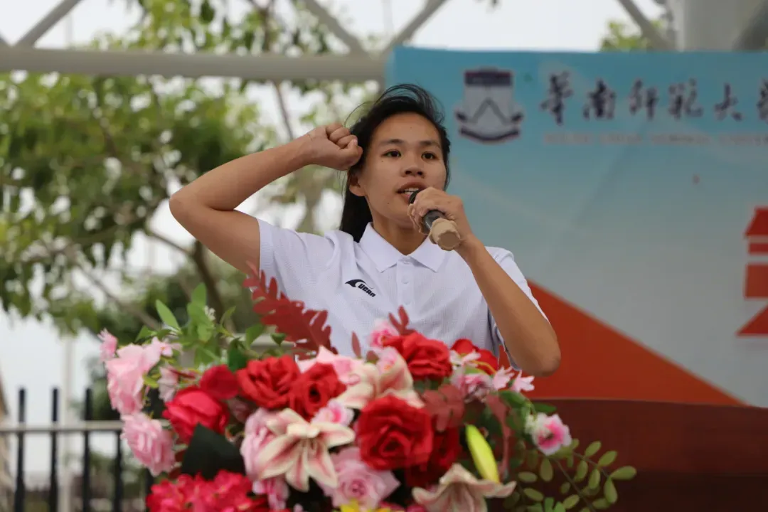 教诲员代表陆兰惠宣誓,快活将信守职责,科学指导,公谈执教,为学生健康成长添砖加瓦!