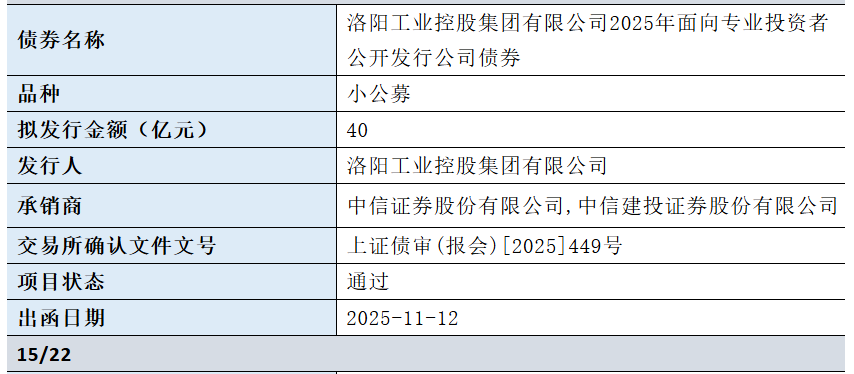【大河财立方讯息】11月12日,洛阳工业控股集团有限公司2025年面向专科投资者公开刊行公司债券风景开云kaiyun,获上交所通过。