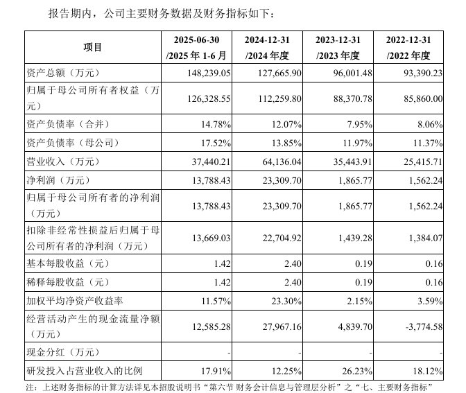 财务方面,于2022年度、2023年度、2024年度以及2025年1-6月,强一股份结束交易收入约为2.54亿元、3.54亿元、6.41亿元、3.74亿元东说念主民币;同期,净利润为1562.24万元、1865.77万元、2.33亿元、1.38亿元东说念主民币。